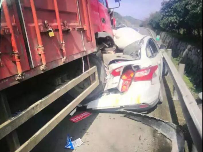 伴随着轰鸣声,一辆重型厢式货车径直朝胡先生这边冲了过来,一头撞上停在硬路肩的轿车。只听一声巨响,碰撞产生巨大的烟雾,货车直接从小车身上碾了过去!硬是将小车压在身下挪了20多米。