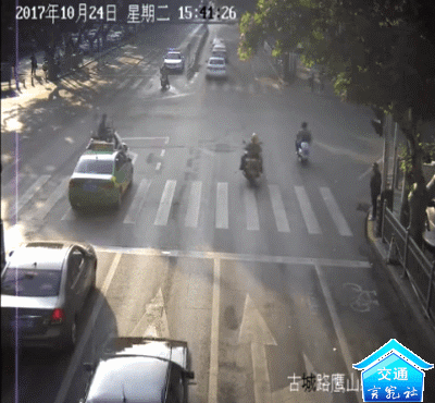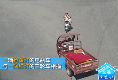 2017年7月24日,安徽六安,一名怀孕女子骑电动车载着孩子,在一路口欲抢黄灯通过,与一辆闯红灯的三轮车相撞,女子与孩子重重摔在地上,伤势严重。↓